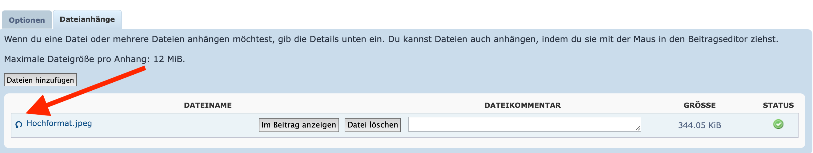 Hierbei geht ihr auf die Dateianhänge und dann seht ihr ganz links neben dem Anhang ein kleines Icon mit dem ihr das Bild entsprechend drehen könnt.