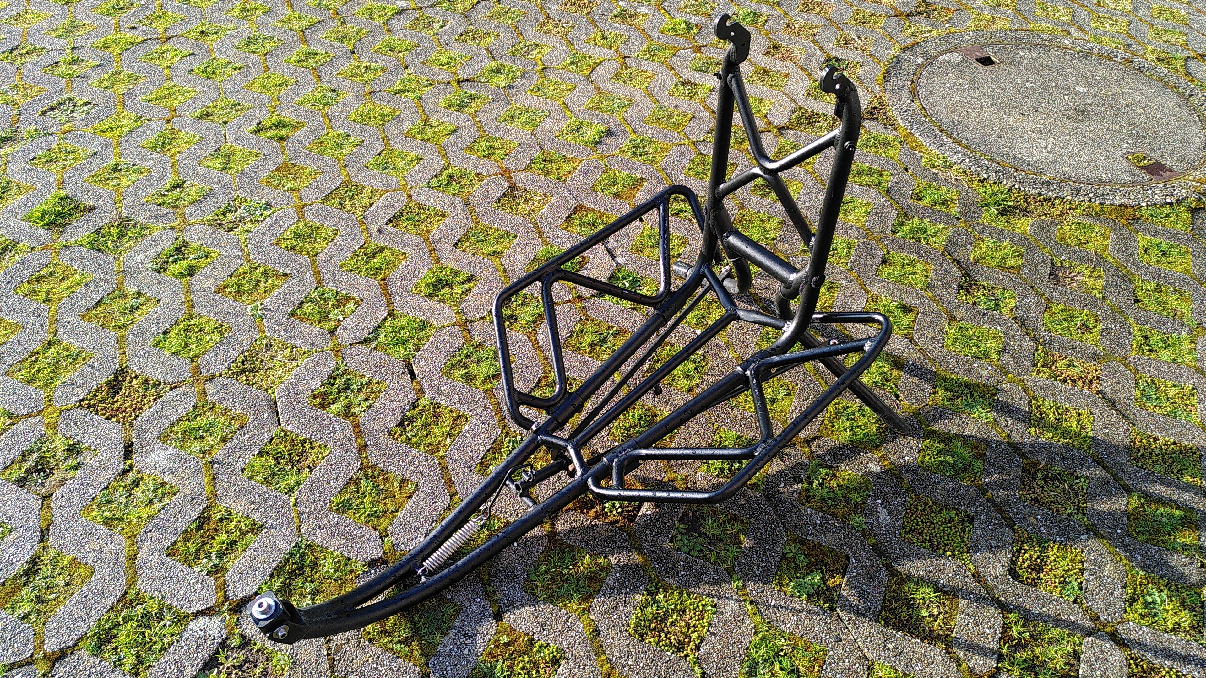 PorterRack Trägersystem mit Parkstütze wird mitgegeben, montiert ist der leichtere Klappständer;